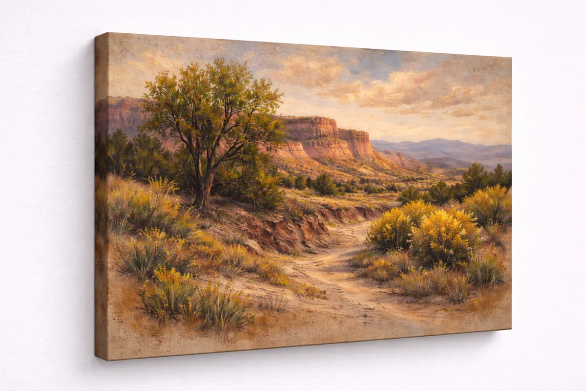 Large-format painting combining oil paint with hand-ground desert pigments on raw linen. An exploration of maternal land and inherited geography.
