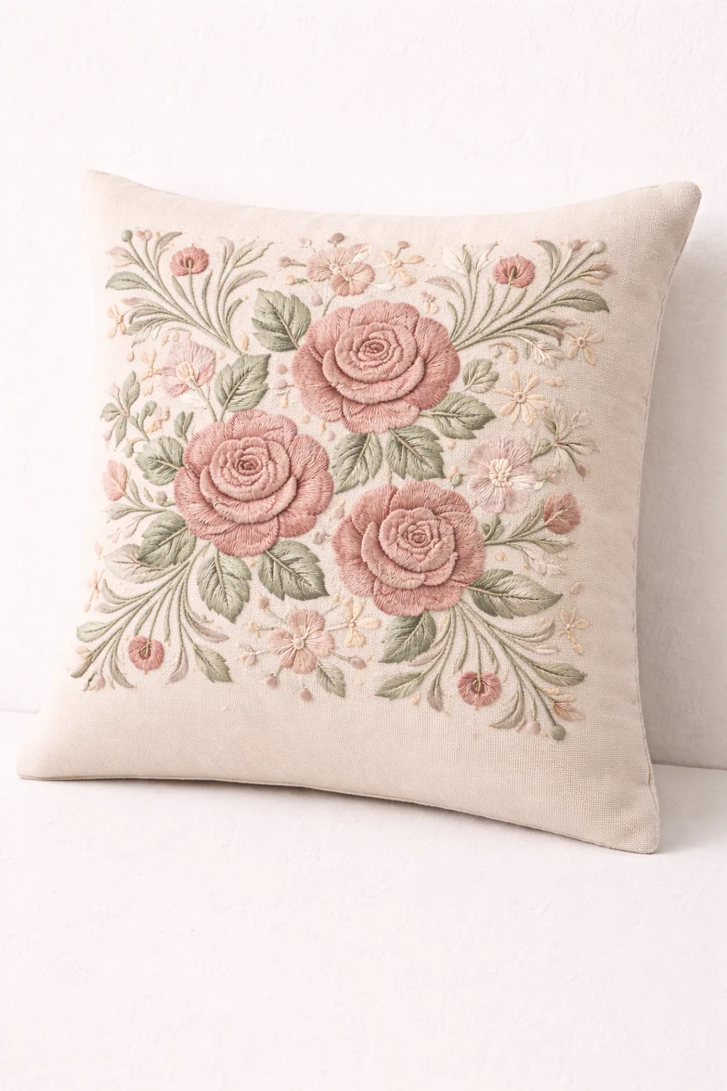 Embroidered Pillow, Rose